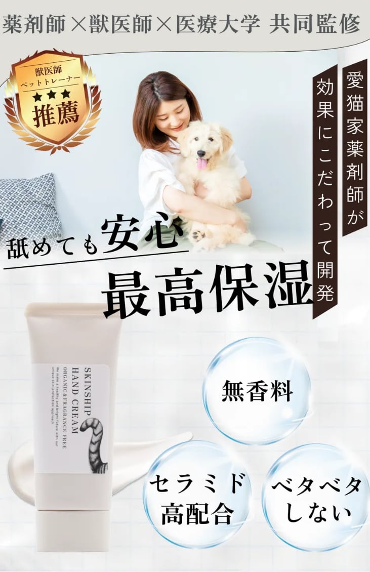 ペットがいるご家庭で安心して使える飼い主様用ハンドクリームです。